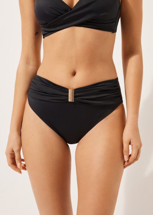 Calzedonia Women’s Swimwear And Cover-ups High-waisted Draped Swimsuit Bottoms Scultura | 038e – Scultura Black