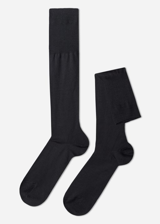 Calzedonia Men’s Lisle Thread Long Socks | 020 – Anthracite Gray Heather | Men’s Socks