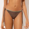 Bikini bottom with side tie closure to adjust the fit. The slightly rounded waist at the front allows it to be worn either in a classic style or a more high-cut fit, depending on one’s physique. The extremely soft fabric makes it pleasant to wear, offering a light and comfortable feel on the skin. Fully lined with invisible seams.