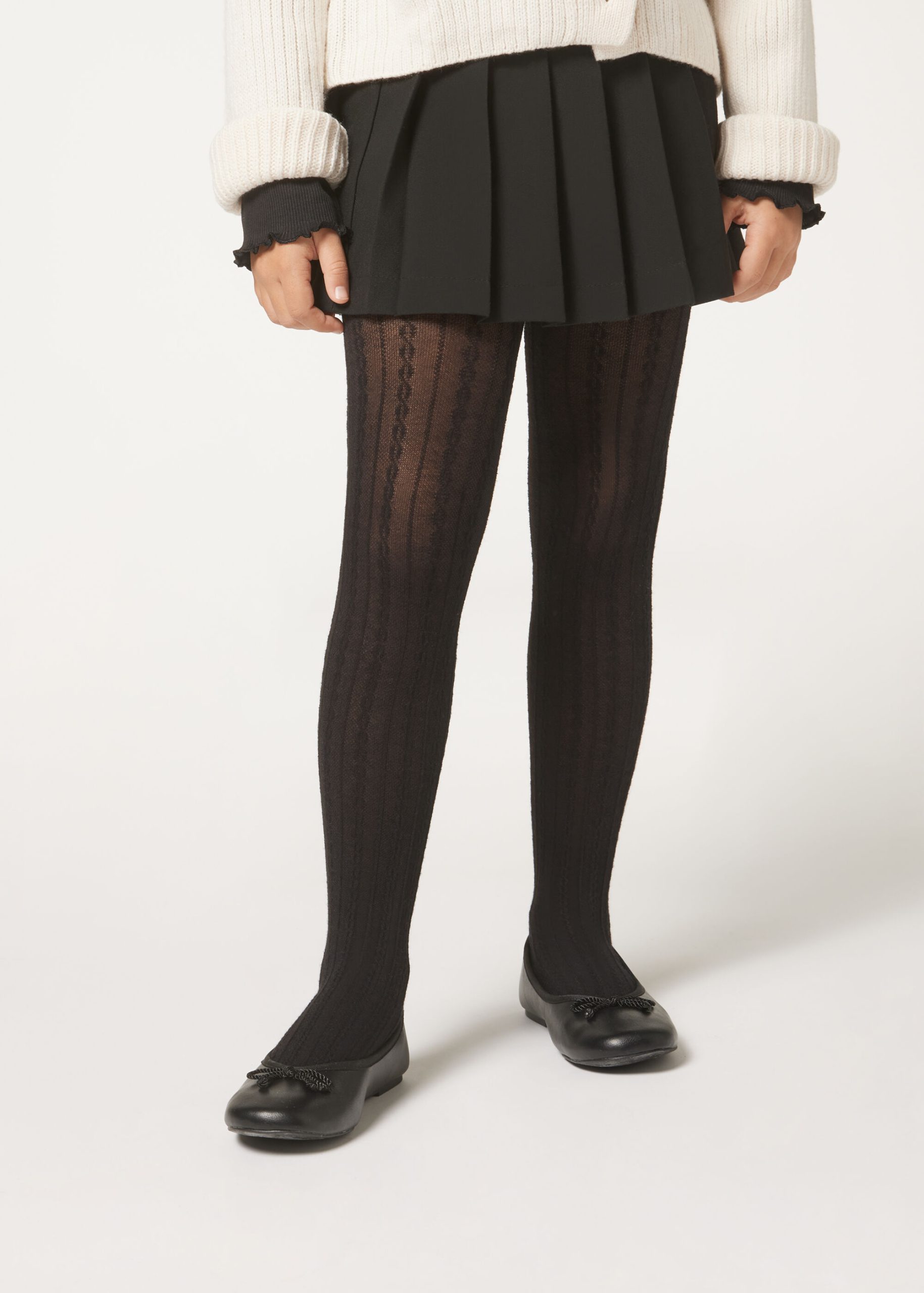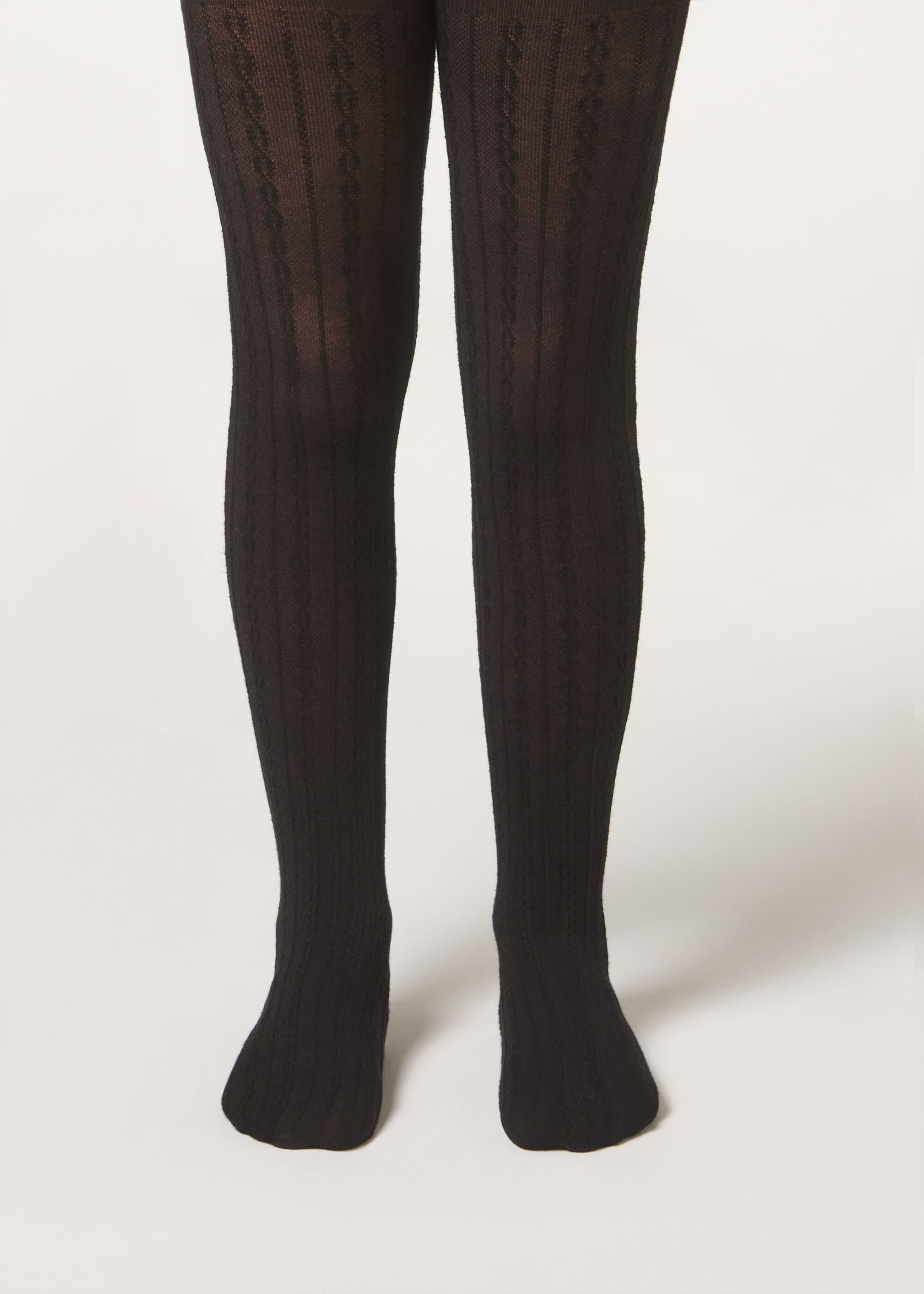 Calzedonia Kid’s Girls (2 – 12 Years) Girls Cable Knit Cashmere Tights | 4708 – Black Braids Cashmere