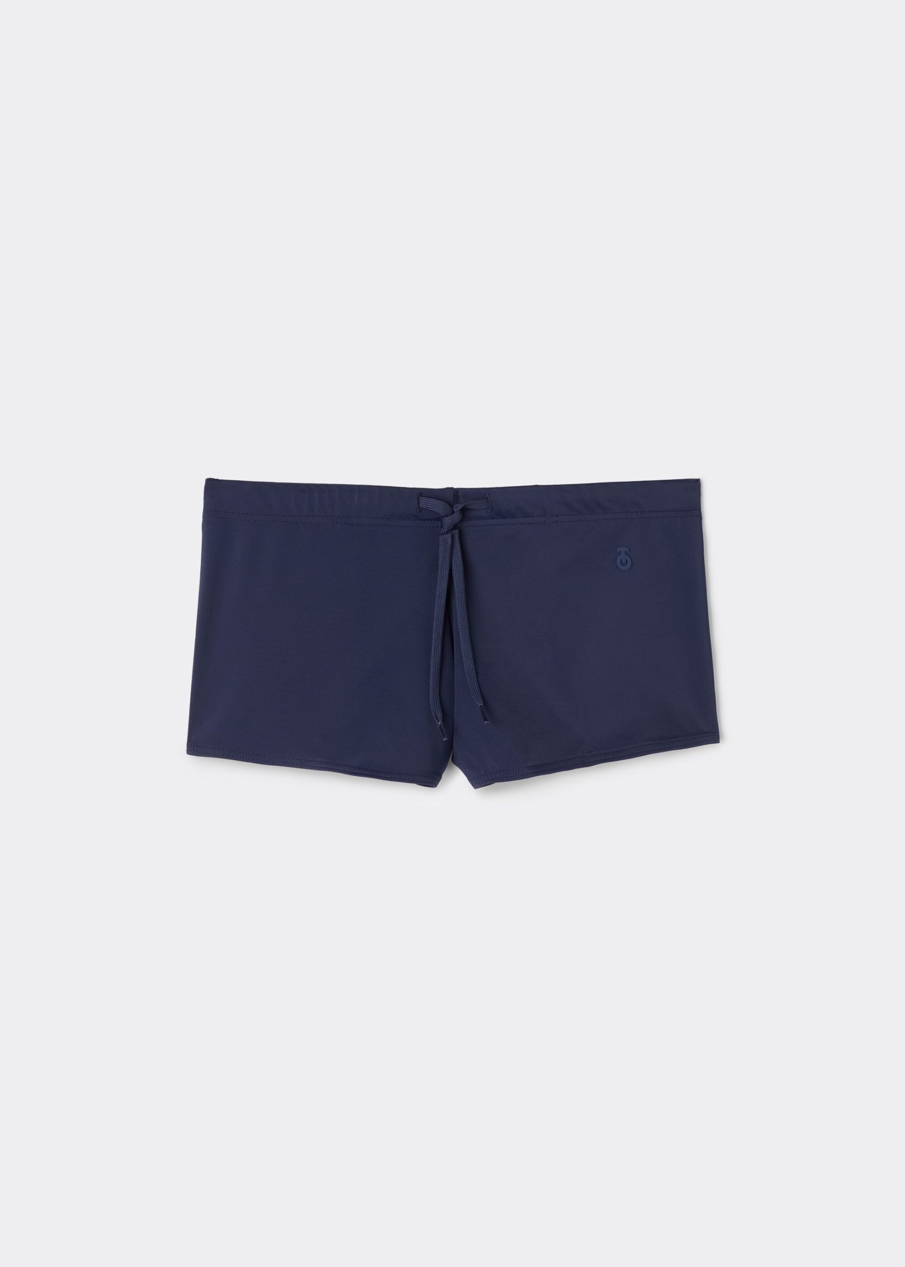 Men’s swimming shorts in microfiber with slightly high sides and regular back coverage. Covered elastic waistband and adjustable external drawstring. Interior front lining.