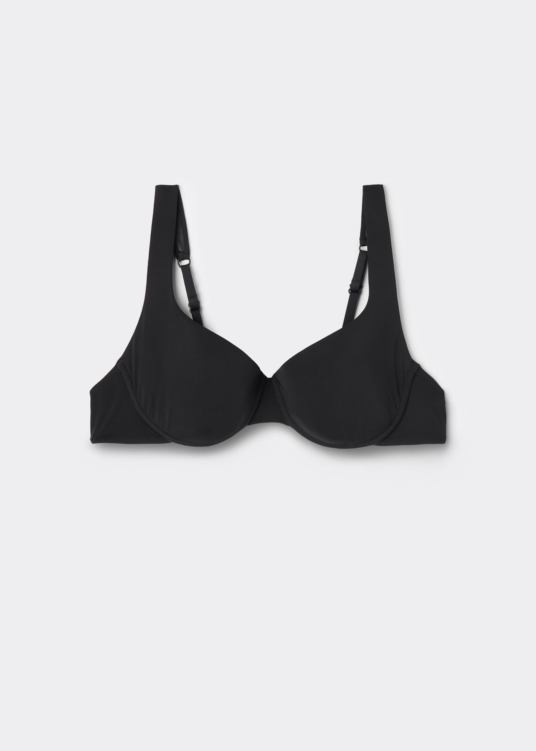 Our lightly padded balconette swimsuit top offers timeless elegance with exceptional support, making it a must-have for flattering, comfortable swimwear. This padded balconette bikini features underwire and light padding, shaping and lifting the bust for a natural, elevating silhouette. The high center design ensures excellent coverage and stability, accommodating a wide range of sizes with ease. Crafted from luxuriously soft fabric, this lightly padded bikini top feels lightweight and smooth, perfect for long beach days or poolside lounging. Adjustable shoulder straps allow you to customize the fit, while the back hook-and-eye closure, featuring two adjusters in sizes XLu002F40 and up, ensures security and comfort throughout the day. Whether paired with classic bikini bottoms or a bold high-waist style, this balconette top delivers a chic and supportive fit that transitions effortlessly from relaxing in the sun to swimming in style.