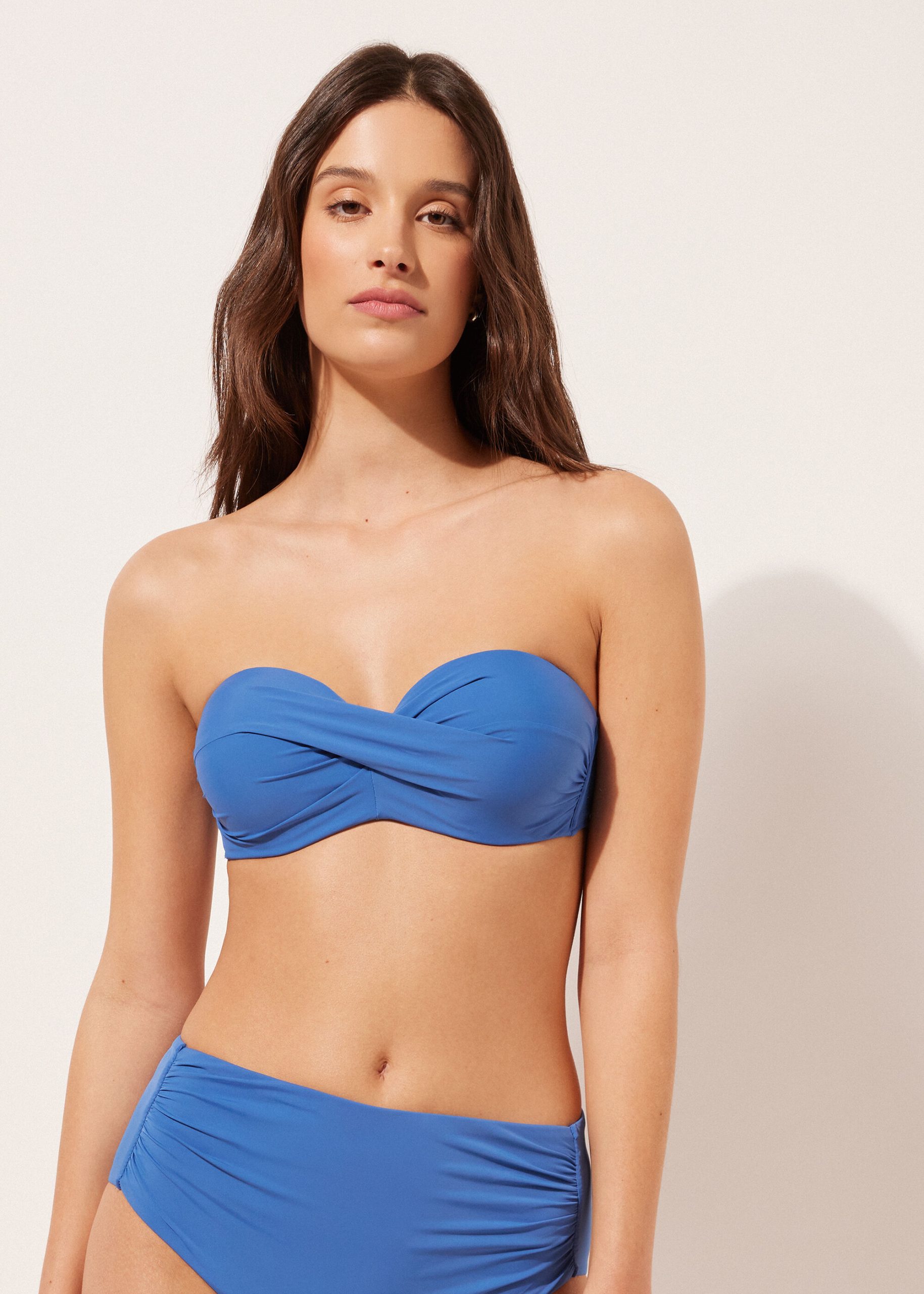 Calzedonia Women’s Bikini Tops Lightly Padded Bandeau Swimsuit Top Indonesia | 060e – Powder Blue Indonesia
