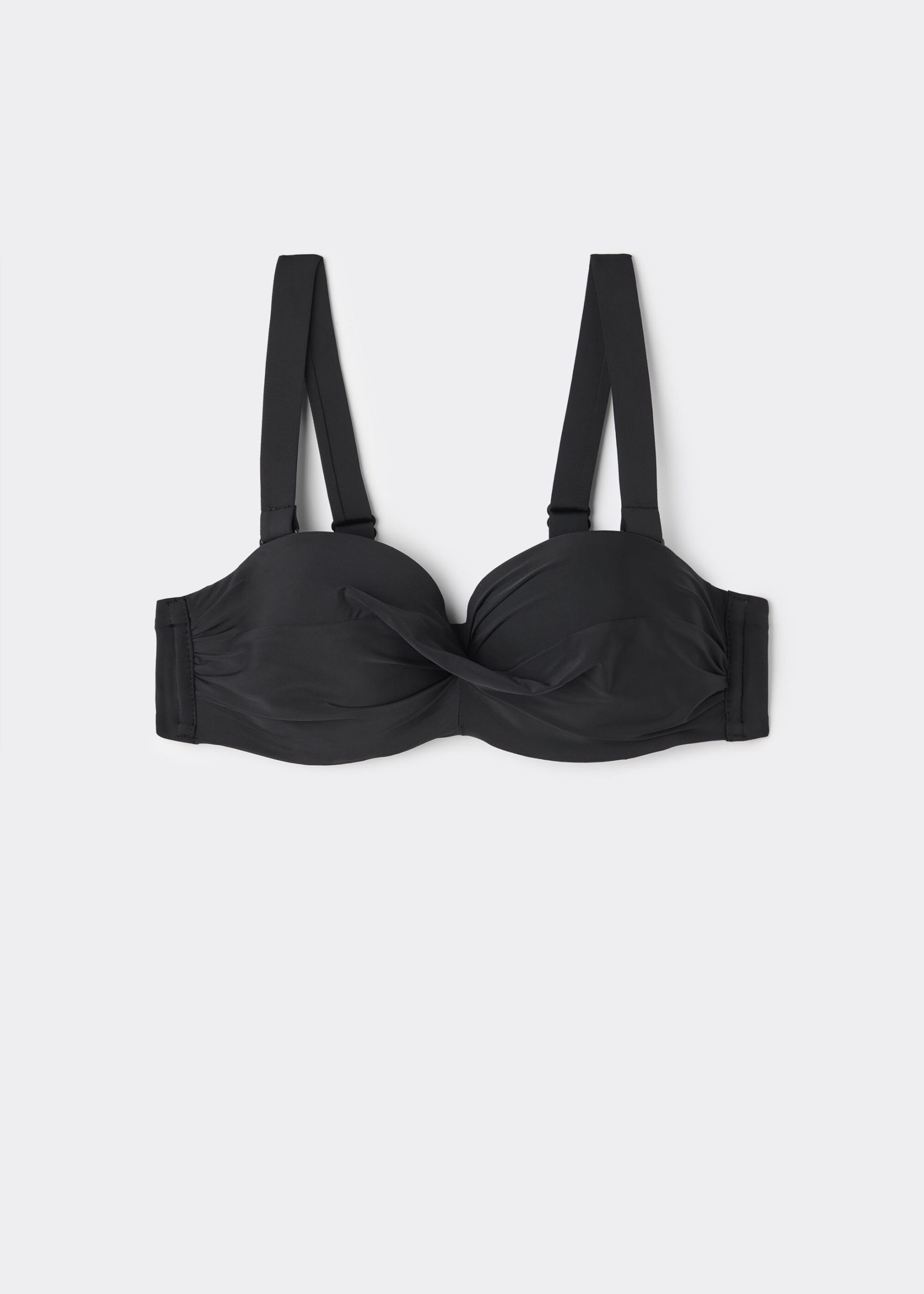 Elevate your swimwear collection with our lightly padded twist bandeau bikini top, designed for a perfect balance of style and support. Featuring a central twist detail, this bandeau style contours and enhances your shape with a flattering silhouette. The underwire and side boning provide exceptional support and structure, making it an excellent choice for all bust sizes, including larger cup sizes. The soft, lightweight fabric feels luxurious on the skin, ensuring all-day comfort whether you’re lounging by the pool or enjoying a swim. Removable, adjustable straps offer versatile styling options, letting you wear it as a classic halter, over-the-shoulder, or strapless for minimal tan lines. A secure back hook-and-eye closure with two adjusters ensures a customized fit that stays in place. Pair this wired bandeau bikini with matching or mix-and-match bottoms for a personalized beach-ready look.