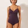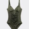 Calzedonia Women’s Bikini Tops Shiny Satin Slimming One Piece Swimsuit | 041e – Shiny Satin Dark Green