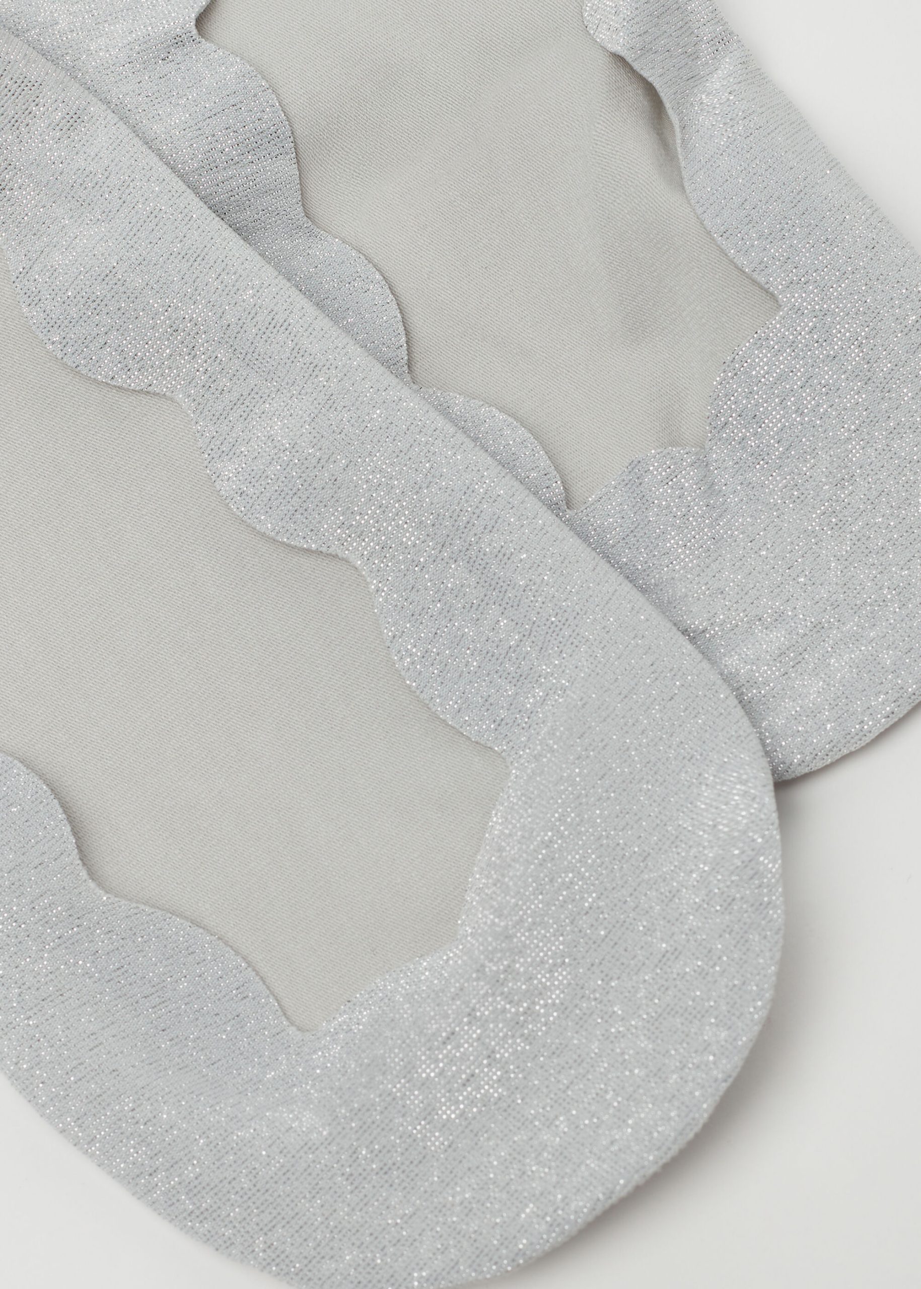 Women’s invisible socks in glittered fabric with scalloped edge and comfortable cotton soles, ideal for low vamp shoes.