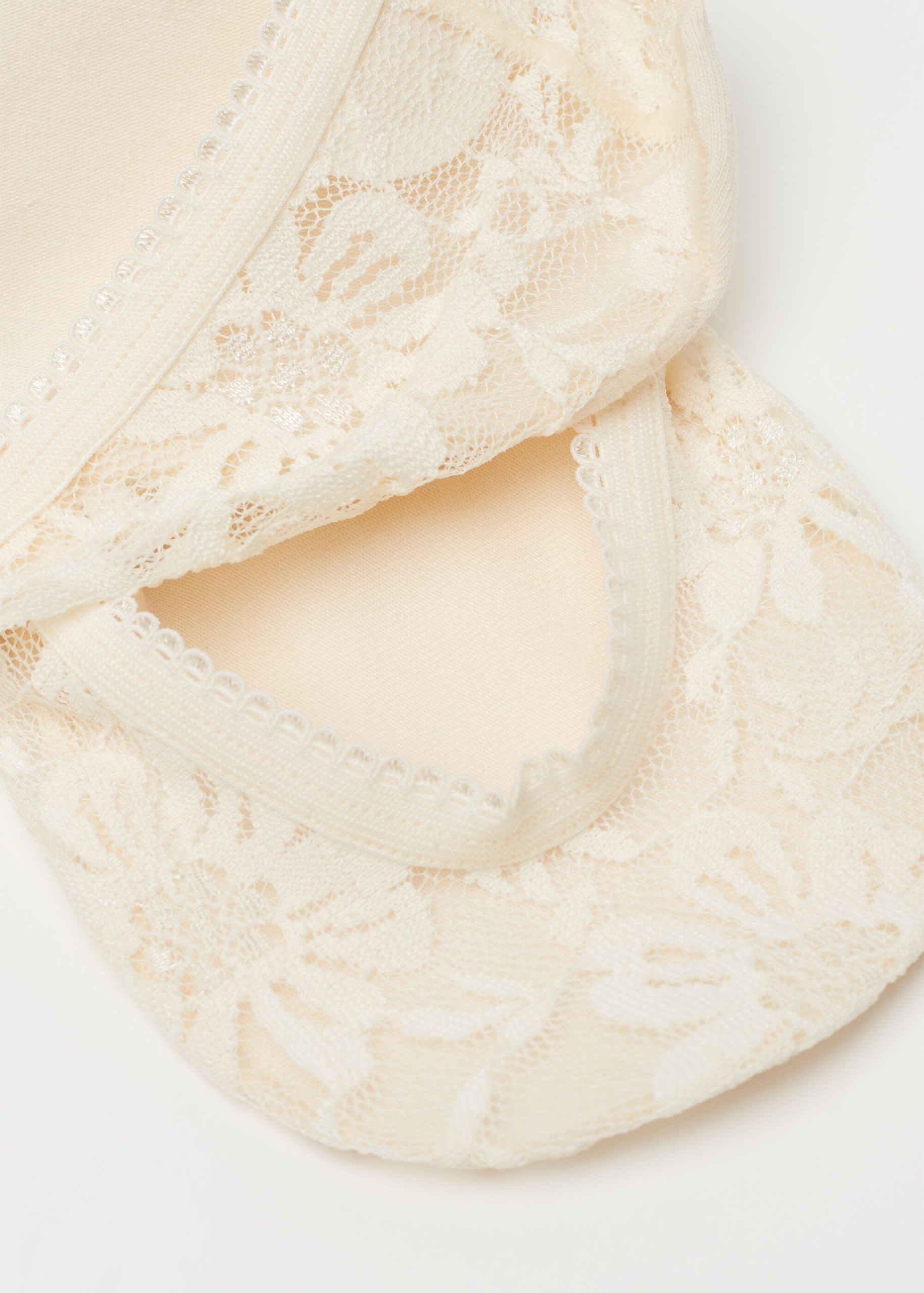 Women’s invisible socks in refined lace with comfortable cotton soles, ideal for low vamp shoes.