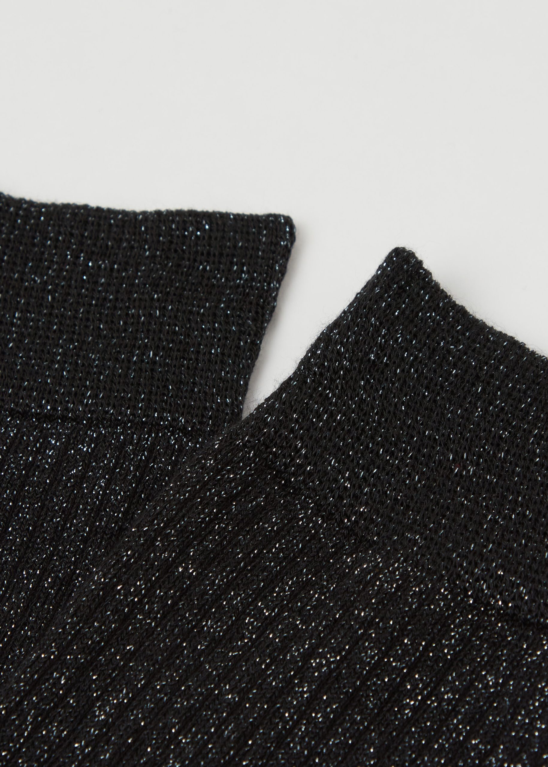 Women’s long ribbed socks with glitter thread. This design adds a touch of shine and style to your outfit, guaranteeing optimal comfort and fit to wear on different occasions.
