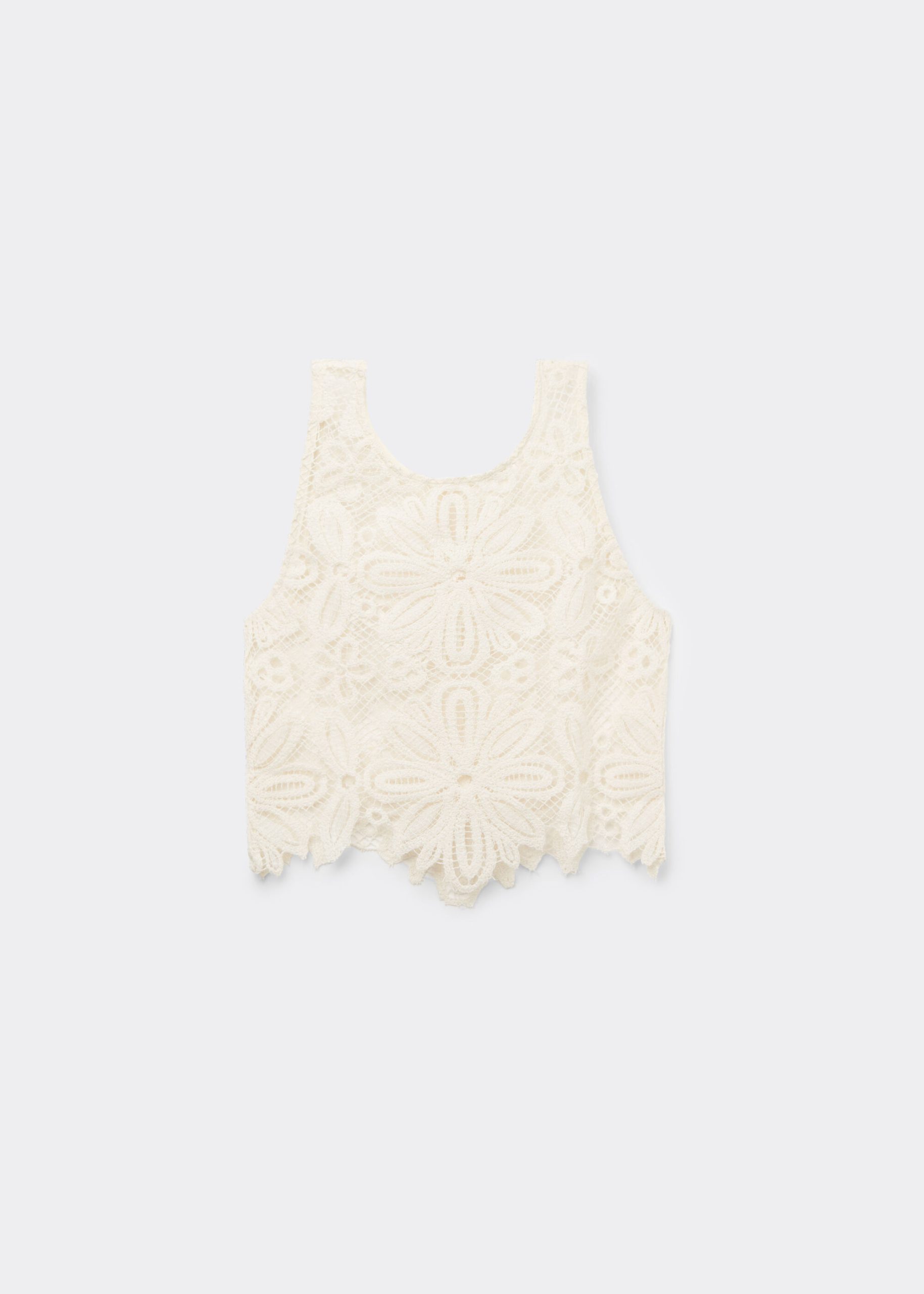 Precious sleeveless crop top crocheted with a sophisticated floral pattern, perfect to wear as a cover-up or paired with the pants 0BDP168 to create a chic outfit. Light and versatile, it adds a touch of elegance and originality, ideal for creating unique and fashionable looks.