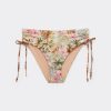 High-waist bikini bottoms with side drawstrings to adjust the fit of the leg openings. A vibrant pattern that combines tropical floral prints and delicate colors with animal print details. Fully lined with invisible seams.