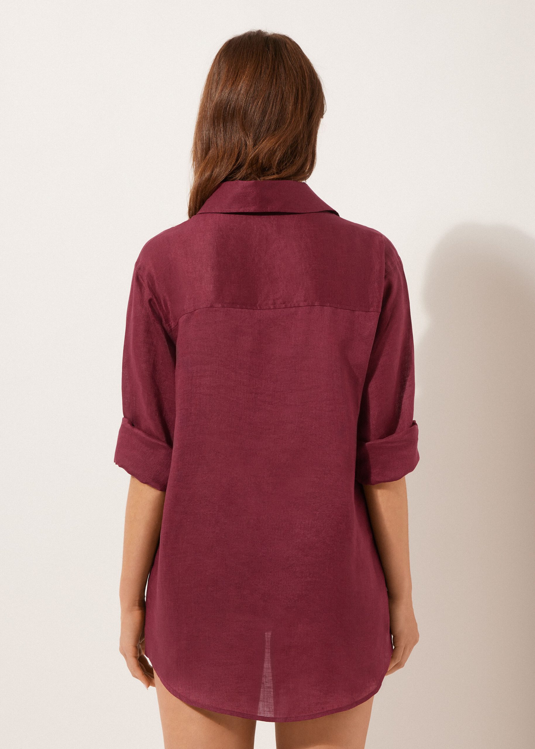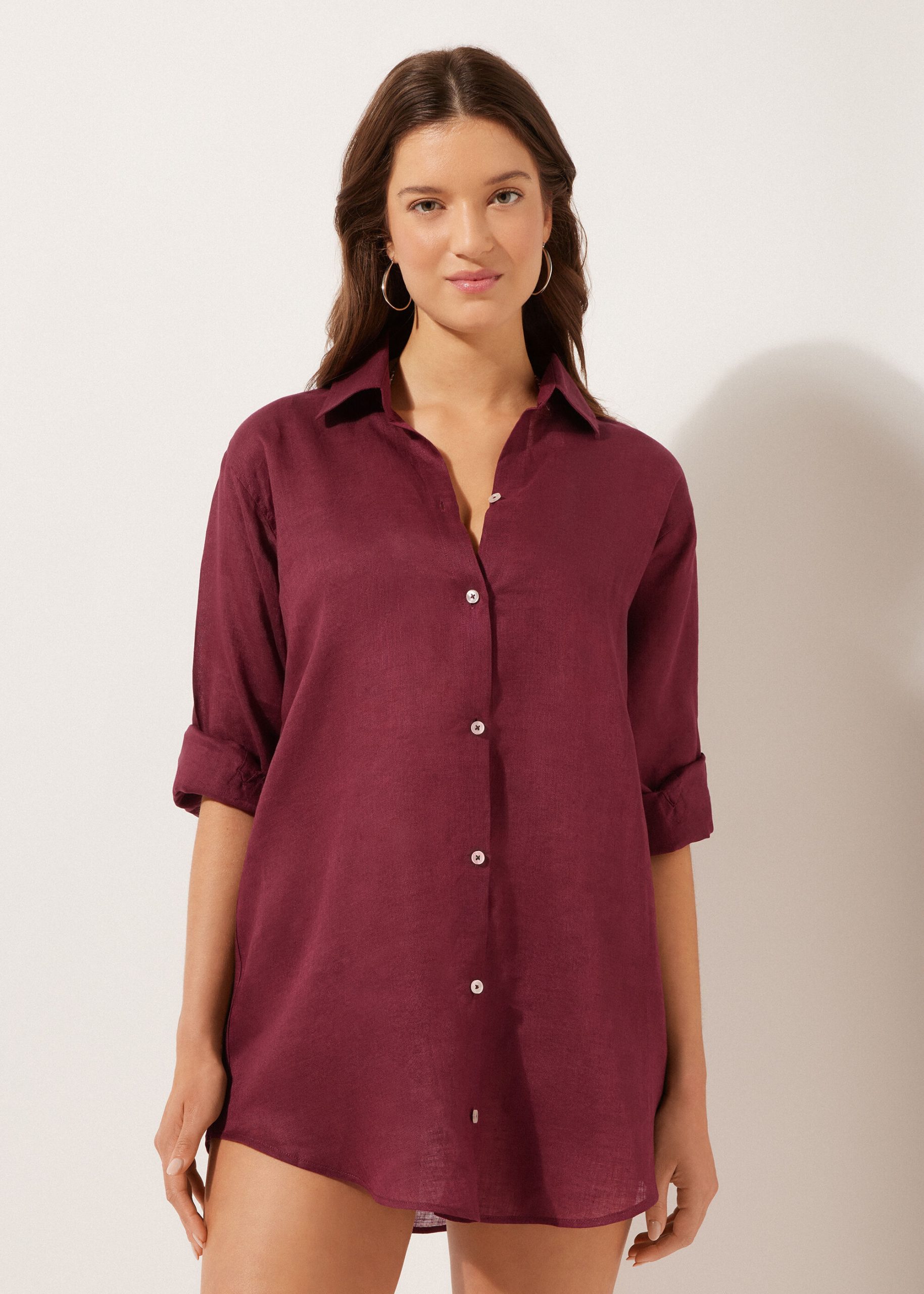 Calzedonia Women’s Swimwear And Cover-ups Linen Shirtdress | 134e – Wine Red Purple