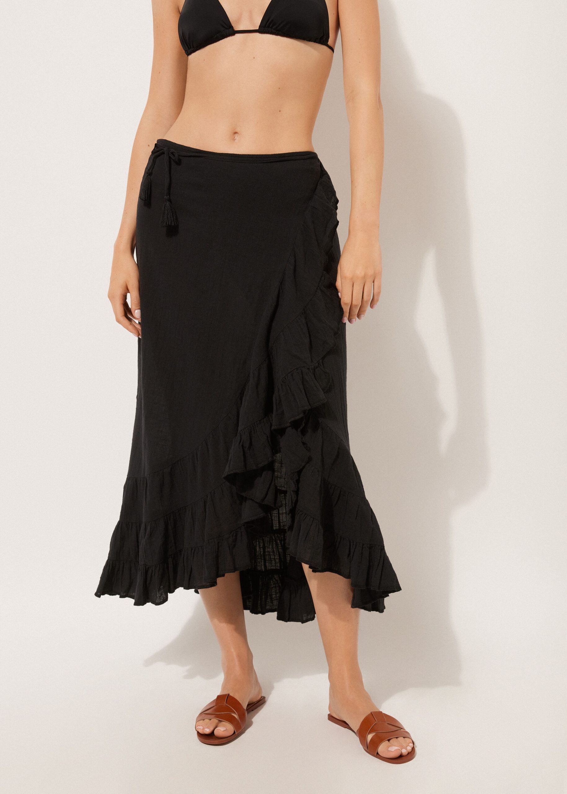 Calzedonia Women’s Swimwear And Cover-ups Long Ruffled Skirt | 894c – Black