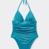 Calzedonia Women’s Swimwear And Cover-ups One Piece Swimsuit Shiny Satin | 039e – Shiny Satin Emerald Blue
