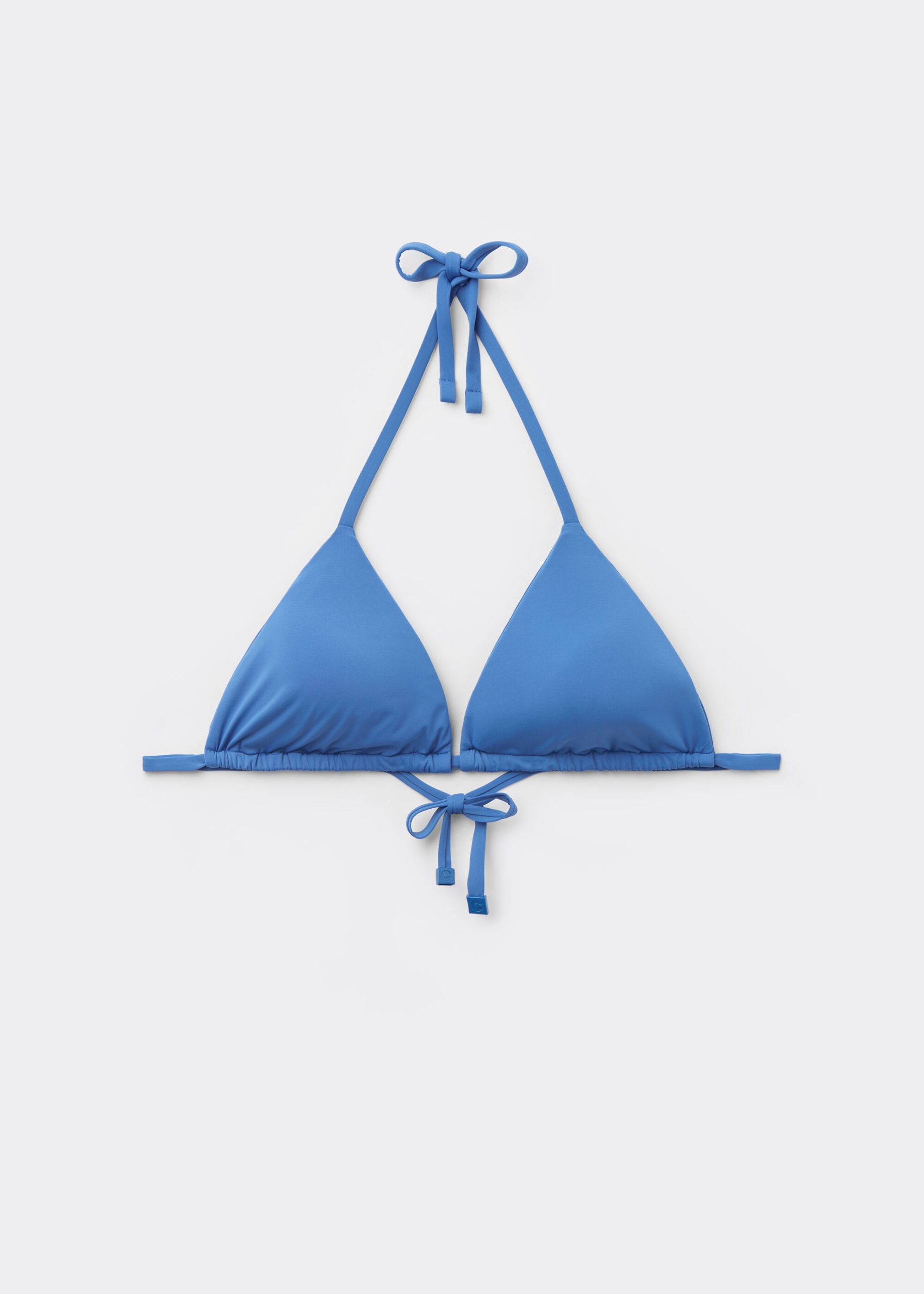 Slide triangle bikini top with removable padding, wireless for a natural effect. The extremely soft fabric makes it pleasant to wear, offering a light and comfortable feel on the skin. The shoulder straps have eyelets on the ends so they can be hooked onto the back band or tied behind the neck. Back string tie closure.
