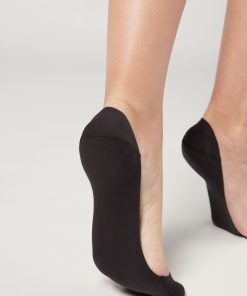 Calzedonia Women’s Cotton Invisible Socks With Silicone Edge | 019 – Black | Women’s Socks